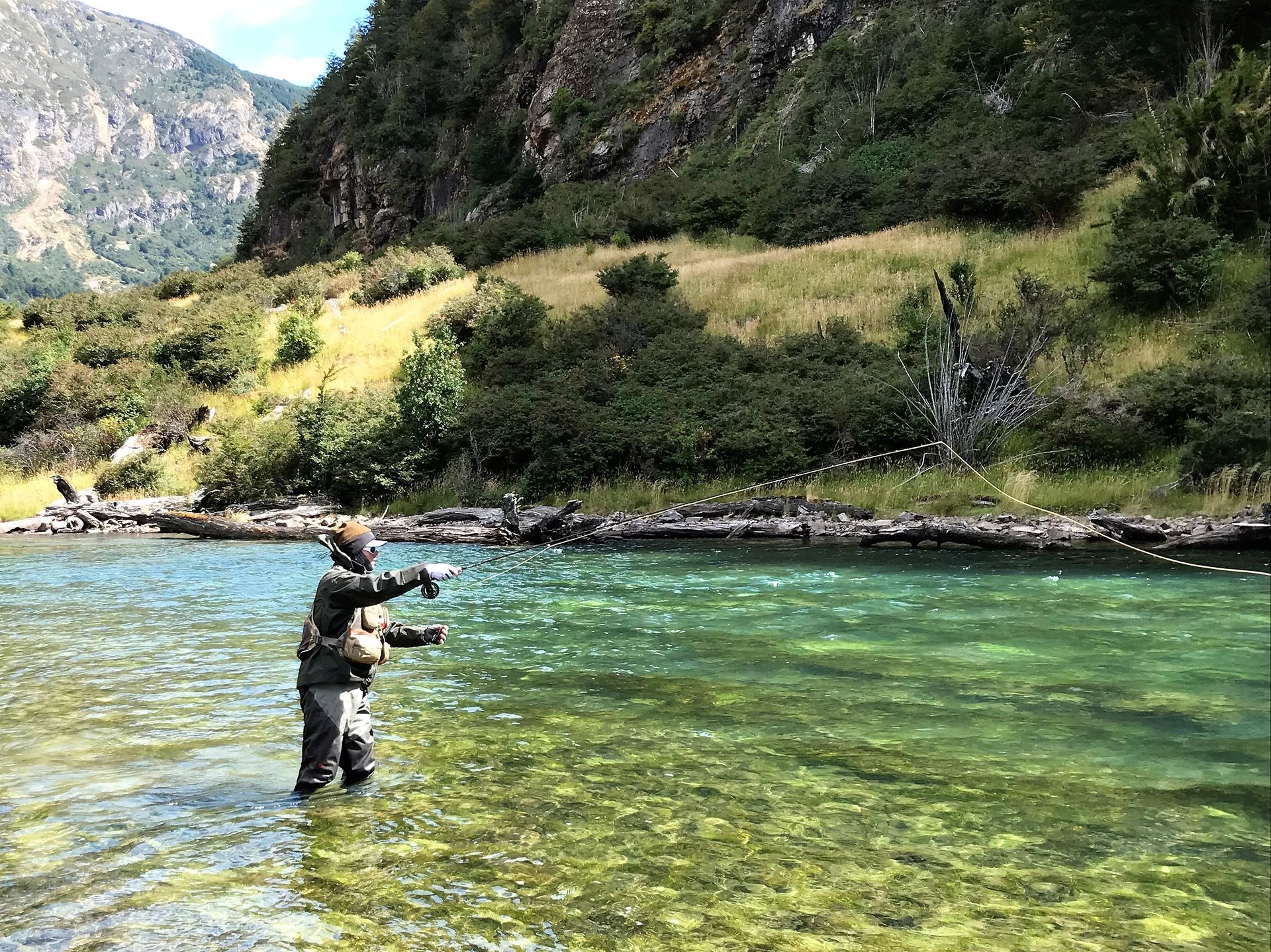 Fly fishing a run in Patagonian Chile